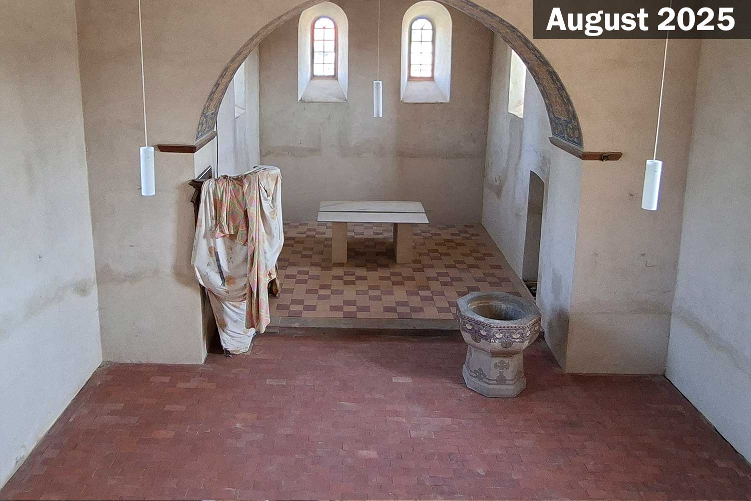 Für 2026 ist der zweite Bauabschnitt geplant – die Stiftung KiBa ist wieder mit 10.000 Euro Fördergeld am Start. In diesem Jahr geht es um die Innenausmalung der Wände und Decken sowie der Restaurierung des gotischen Altarschreins und des Taufsteins. Es bleibt also spannend in Deetz! Die gesamte Sanierung ist Teil eines größeren Plans, um die Kirche für die Gemeinde zukunftsfähig zu machen und den Raum für verschiedene gottesdienstliche und gemeinschaftliche Formate zu öffnen.
