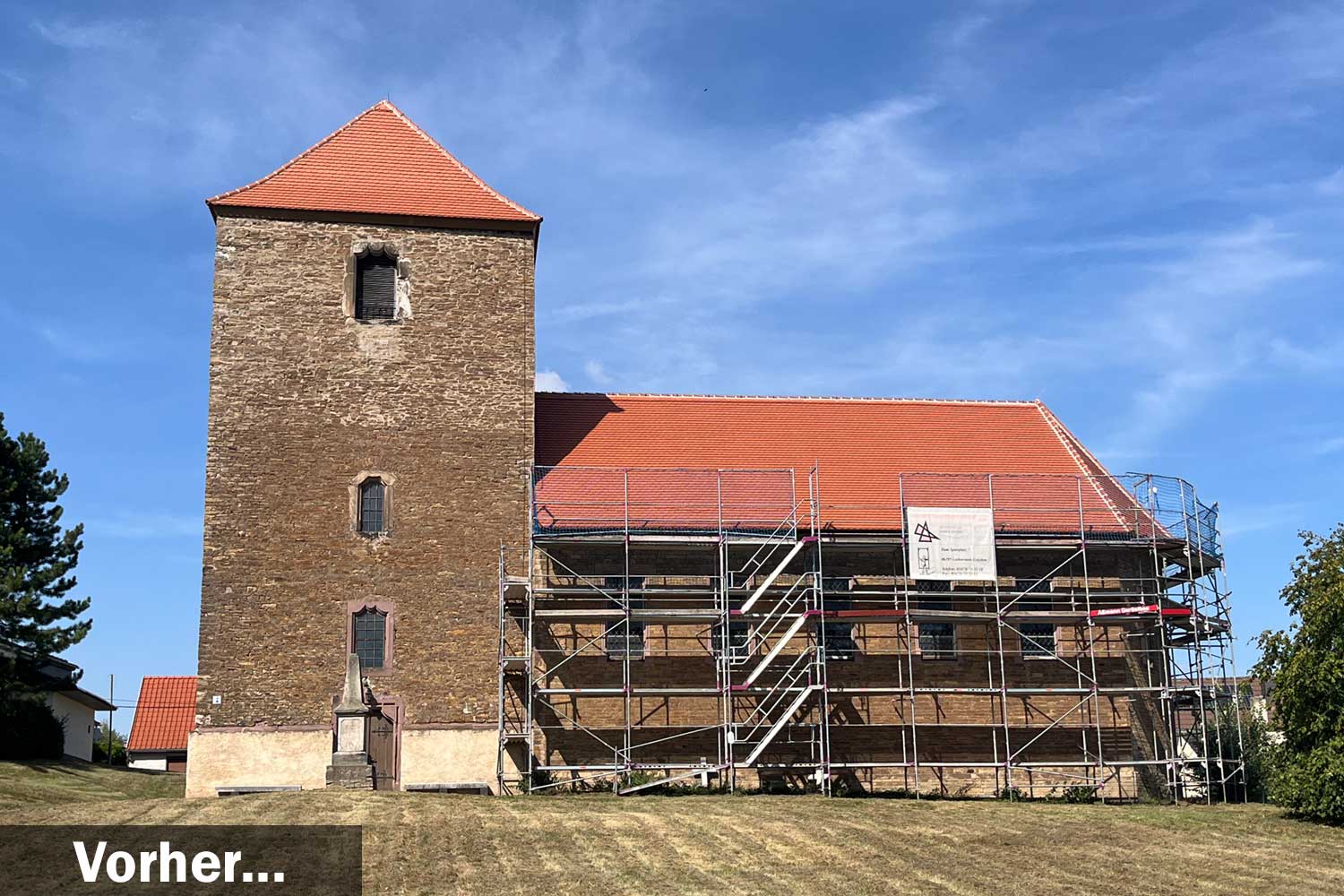 Die Kirchengemeinde ging die Sanierung in mehreren Abschnitten an. Bereits 2018 wurde eine so genannte Geländeregulierung zur Reduzierung der Feuchtigkeit im Mauerwerk durchgeführt und der Sockel instandgesetzt. Drei Jahre später konnten das Turmdach und ein Teilabschnitt der Kirchenschiffdachs in eine Biberschwanz-Doppeldeckung neu gedeckt werden. Jetzt ist mit der vollständigen Dachinstandsetzung des Kirchenschiffes auch der dritte und letzte Bauabschnitt erfolgreich abgeschlossen. Das war auch dringend notwendig, denn die Schäden waren weiter fortgeschritten.
