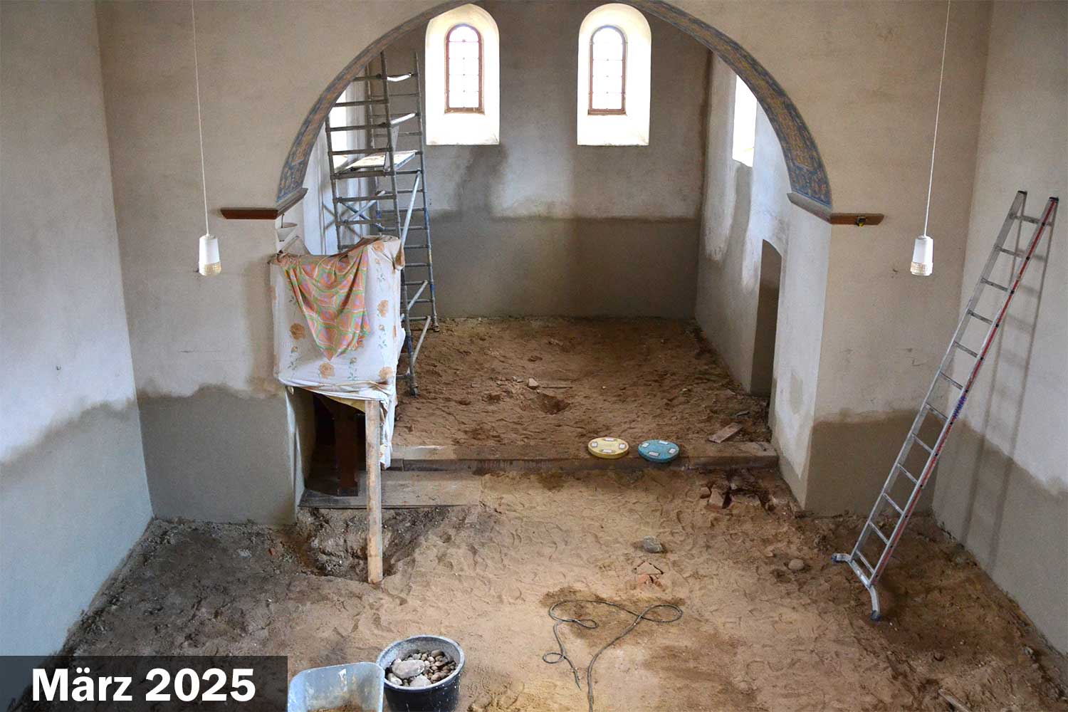 Der Zustand im Inneren der im 13. Jahrhundert errichteten Kirche war höchst besorgniserregend. Der Dielenboden im Schiff war einbruchgefährdet, und auch der Zementplattenboden im Chor war nicht mehr sicher.