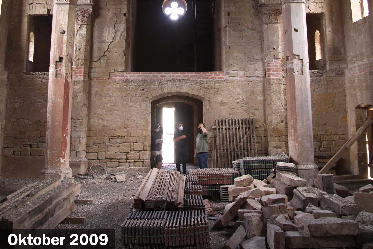In einem ersten Kraftakt wurde die Kirche zunächst entrümpelt, die Tauben wurden vertrieben und das Dach abgedichtet. Ein besonderer Fokus lag zuletzt auf der Wiederherstellung des Fußbodens und der Erneuerung der Eingänge. Im Winter 2024/2025 wurde der alte Bauschutt entfernt, der historische Sand-Unterbau im Kirchenschiff durfte bleiben.